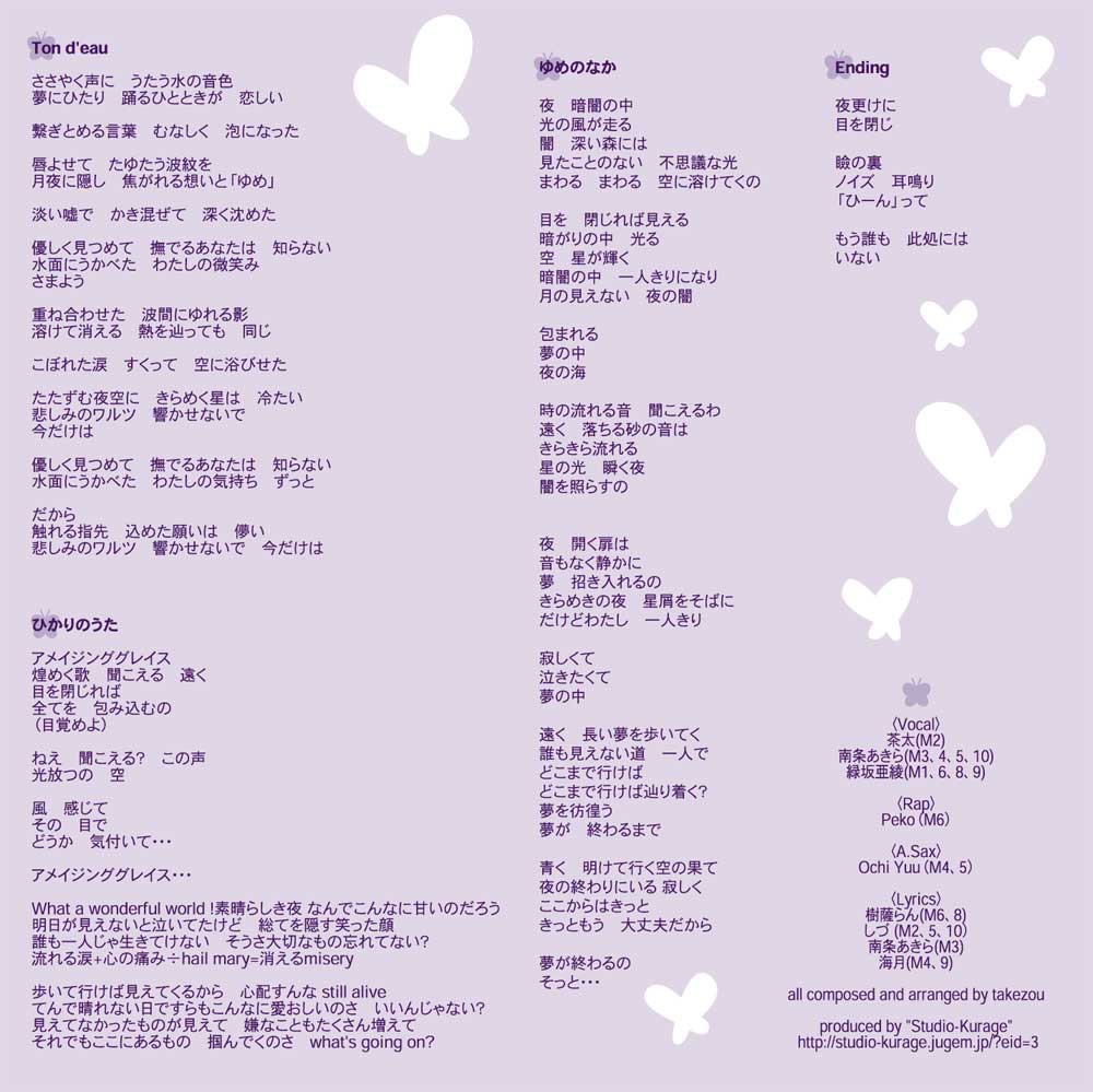 ダウンロード後、A4の紙に印刷して周りをカットすればCDケースに収まるサイズの歌詞カードになります。